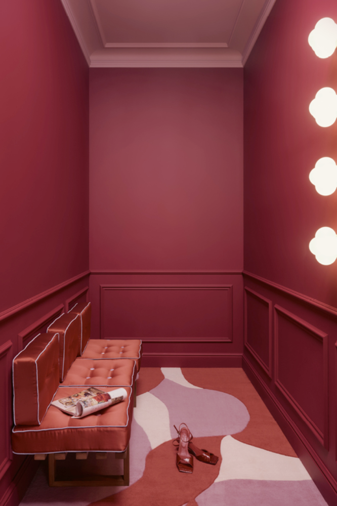 Travailler les moulures dans une teinte forte, un rouge profond, un bleu nuit, un vert sapin, change immédiatement la perception d’un espace. En choisissant d’appliquer une couleur monochrome sur l’ensemble du mur, y compris les profilés, on obtient un rendu enveloppant, presque scénographique. Une même pièce prend une toute nouvelle ampleur, sans besoin de modifier sa structure.