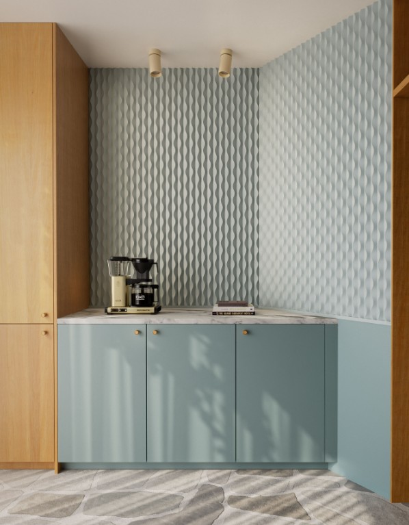 W219 Zea Inspiré par les marées de trois mers, ce panneau organique, presque sculptural, joue avec la texture, la couleur et l'ombre, pour un résultat à la fois doux et puissant.